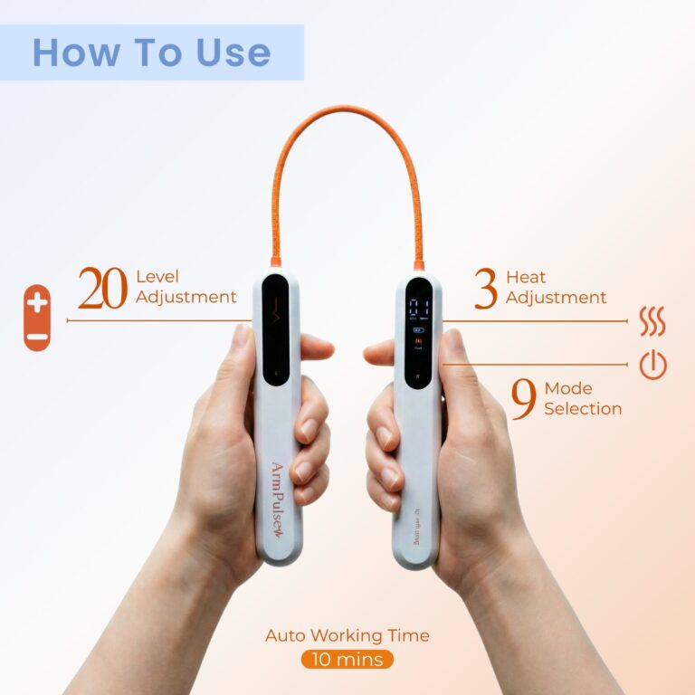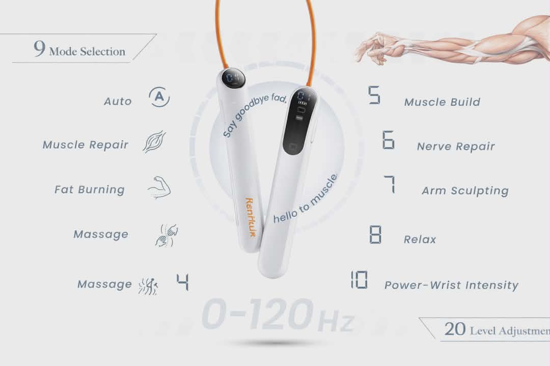 This patented ArmPulse is designed with a digital display and two handles as electrodes to stimulate your palms, wrists, forearms and arms for building muscle and fat burning to create better appearance looks of your arm.